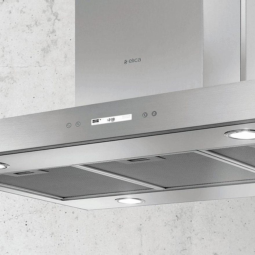 Благодаря островному монтажу вытяжка ELICA SPOT PLUS ISLAND IX/A/90 монтируется по всей площади потолка. Информативный дисплей отображает установленные настройки. Панель управления представлена в кнопочном виде. Данный прибор необходимо размещать не ниже 50 см от электрической плитки, и не ниже 65 см — от газовой.