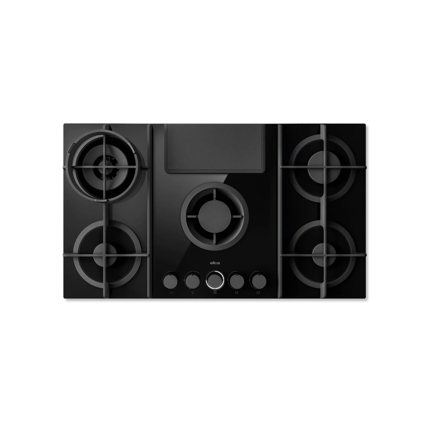 Ключевая особенность модели Elica NIKOLATESLA FLAME BL/A/88 — интегрированная вытяжка, размещенная в центре панели и работающая в режиме отвода воздуха. Система периметрального всасывания сразу захватывает пар, дым и запахи непосредственно около конфорок, не позволяя им распространяться по кухне. Максимальная производительность в режиме отвода достигает 1200 м³/ч, при этом предусмотрено несколько скоростей и интенсивный режим с автоматическим отключением, что обеспечивает эффективную очистку воздуха даже при активной готовке.