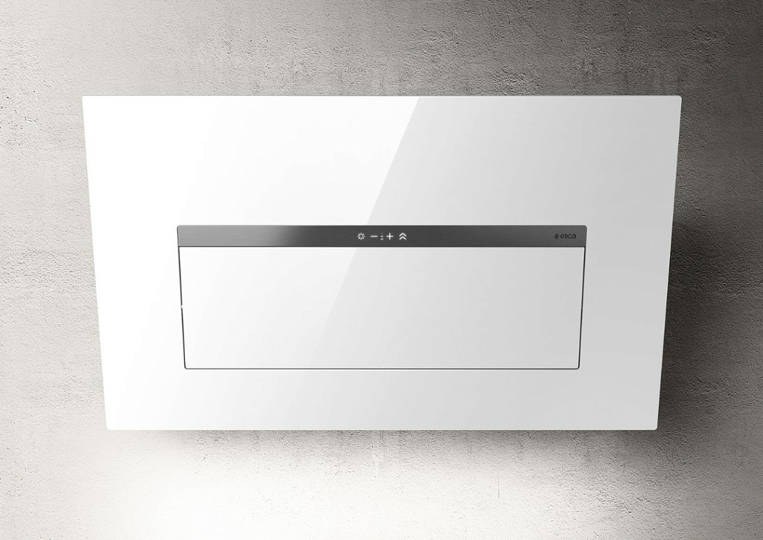 Модель выполнена из белого стекла с плавными линиями, что придаёт кухне элегантный вид. Уникальная створка Moving Visor скрывает жироулавливающий фильтр во время простоя, сохраняя прибор в чистом и аккуратном состоянии. При работе створка раскрывается полностью, увеличивая площадь захвата воздуха и повышая эффективность очистки.