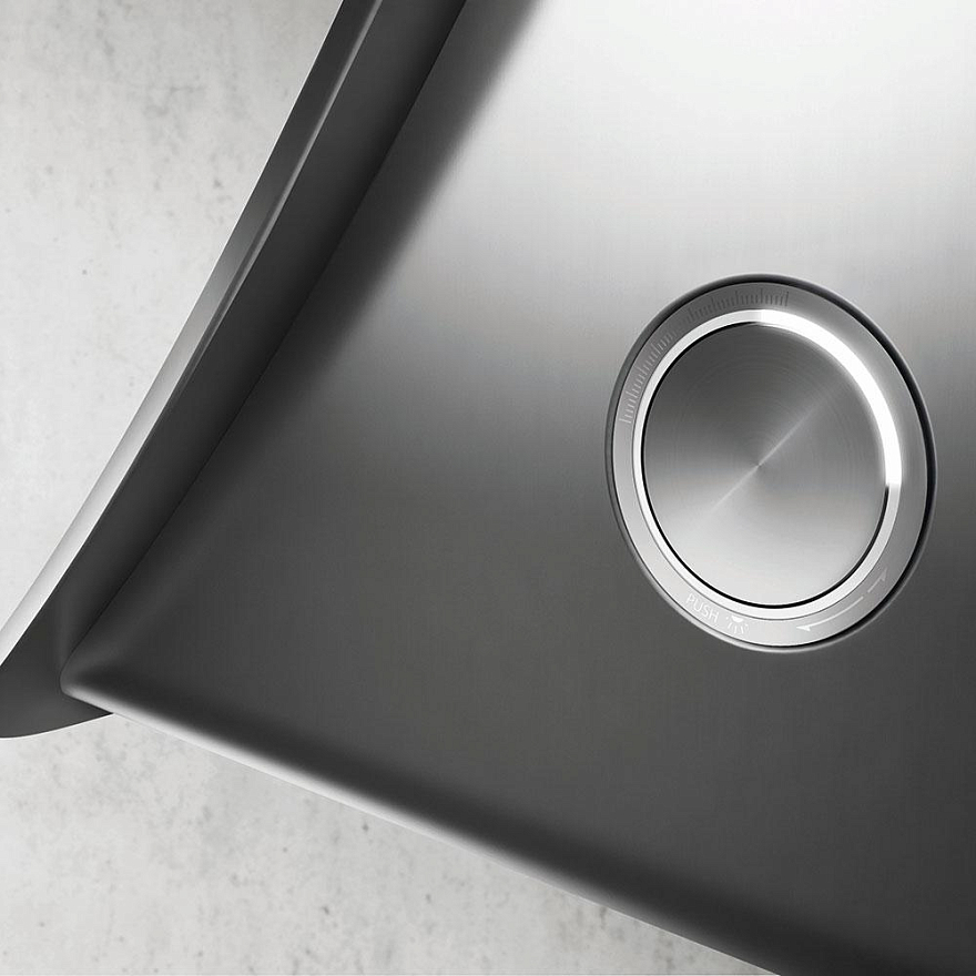 Ширина 76 см обеспечивает более широкое покрытие кухни и эффективное удаление запахов. Встроенный электронный программатор с вращающимся диском находится на боковой стороне и полностью скрыт в нерабочем положении – это делает управление простым и эстетичным.