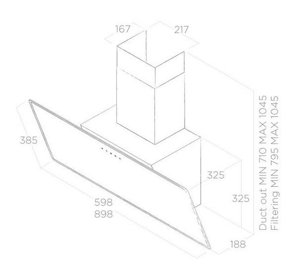 В режиме отведения воздуха достигается до 1200 куб.м/час, а при рециркуляции – 650 куб.м/час. В комплекте алюминиевый жироулавливающий фильтр, который легко заменяется, а угольный фильтр (для режима рециркуляции) приобретается отдельно и эффективно устраняет неприятные запахи. Индикатор насыщения фильтров всегда информирует о необходимости замены или очистки, повышая удобство эксплуатации.