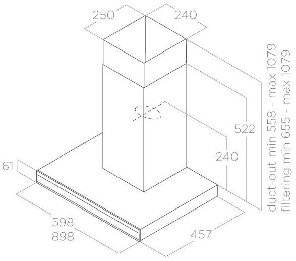 Эта модель выполнена в элегантном цвете «нержавеющая сталь» с черными вставками. Лаконичные прямые линии и минималистичный профиль позволяют легко вписать вытяжку в любой кухонный интерьер – от классического до ультрасовременного. Благодаря компактным размерам (90 см) она идеально подходит для небольших кухонь, не занимая лишнего места.