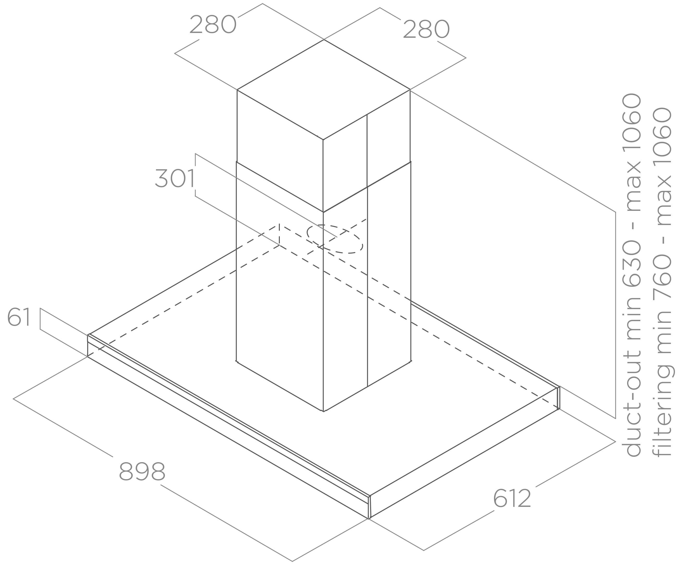 Дизайн модели выполнен по линии DESIGN FABRIZIO CRISÀ: строгий черный корпус с гладкими линиями придает кухне изысканный вид. Потолочный монтаж позволяет установить вытяжку в любом месте, экономя пространство на столешнице и создавая ощущение открытого пространства.