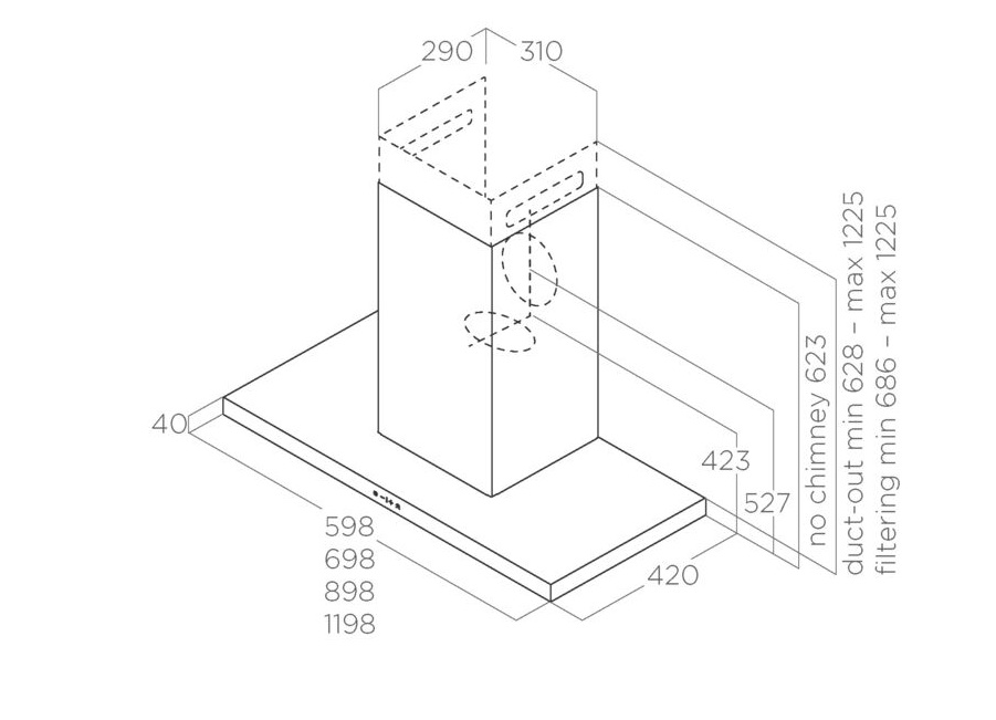 Вытяжка ЭЛИКА THIN IX/A/70 имеет 3 скорости, а также интенсивный режим, который придет на помощь, если возникнет большое количество дыма или пара. Она может работать как в режиме отвода, так и рециркуляции. Для работы с подключением к вентиляции необходимо проложить воздуховод, при этом технология Back Aspiration сделала возможным его присоединение в задней части корпуса, а значит его можно полностью спрятать в стене, не нарушая гармоничность интерьера кухни. Для автономного функционирования потребуется приобрести угольный фильтр, который подлежит регулярной замене. Он будет очищать воздушные массы от запахов.