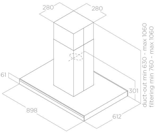 Ширина 90 см и глубина 61,2 см позволяют разместить прибор над кухонным островом, создавая гармоничное пространство для готовки. Элегантная T‑образная форма в мягком черном цвете легко сочетается с любой отделкой, а панель управления из темного стекла плавно вписывается в поверхность из стеклокерамики.