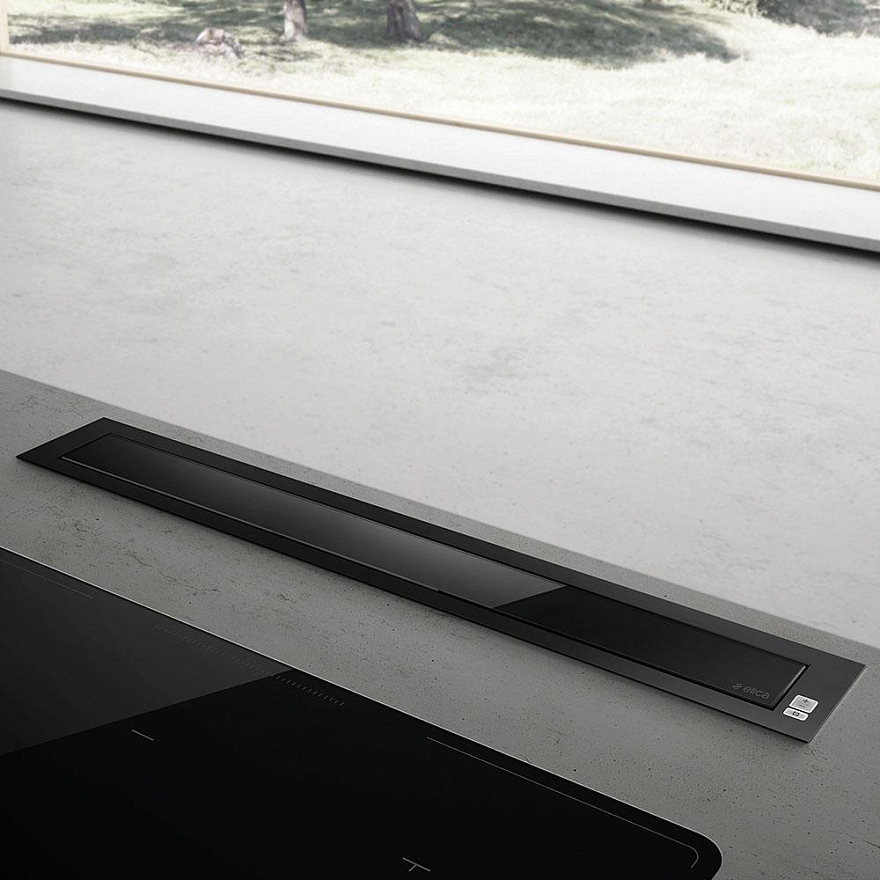 Вытяжка Elica PANDORA BL/F/90 встраивается в столешницу рядом с варочной панелью. Благодаря этому она занимает мало места. В рабочем режиме устройство выдвигается вверх, в выключенном состоянии — убирается в стол. Прибор прекрасно подходит для компактных квартир. Близость к варочной панели позволяет максимально быстро всасывать загрязненный воздух. Неприятные запахи и копоть не успеют распространиться по комнате. Модель сделана из прочного металла. Покрытие не меняет цвет и не тускнеет со временем. Любые загрязнения без труда с него удаляются. Панель управления сенсорная. Вы легко сможете переключать режимы во время готовки.