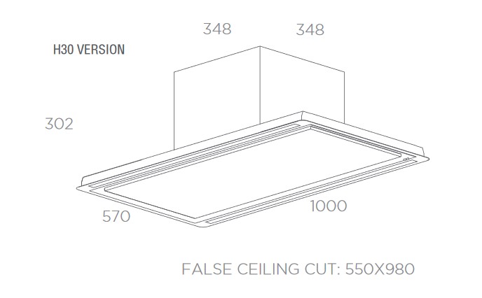 Белый корпус из стекла и металла придаёт изделию элегантный вид, а компактные габариты (высота 30,2 см, ширина 100 см, глубина 57 см) позволяют установить её под потолок без потери пространства. Благодаря этому ваша кухня остаётся открытой и светлой, а вытяжка не занимает лишнего места.